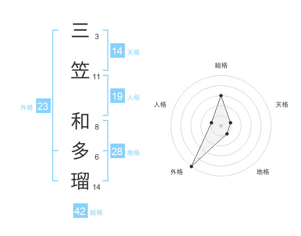 三笠 和多瑠さんの外格は23画の5点!