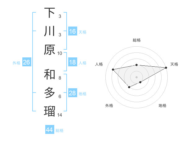 下川原 和多瑠さんを姓名の画数から五運を鑑定