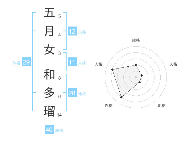 五月女 和多瑠さんの外格は29画の4点!