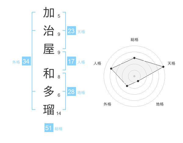 加治屋 和多瑠さんの総格は51画の3点!