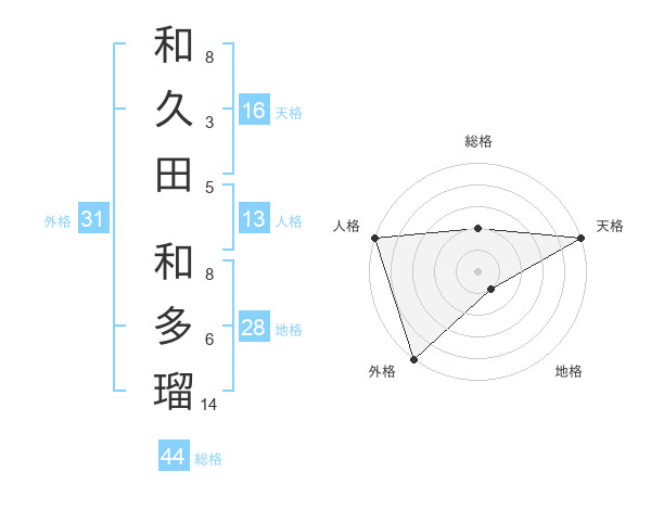 和久田 和多瑠さんを姓名の画数から五運を鑑定