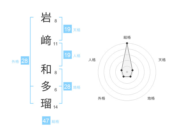 岩﨑 和多瑠さんを姓名の画数から五運を鑑定