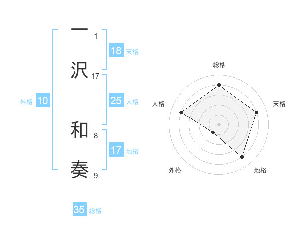 一沢 和奏さんの外格は10画の1点!