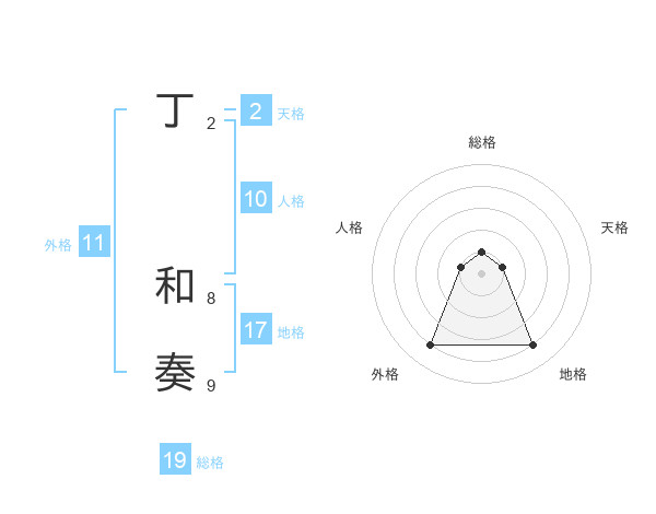 丁 和奏さんの外格は11画の4点!