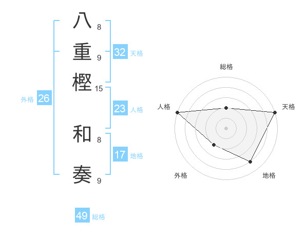 八重樫 和奏さんを姓名の画数から五運を鑑定