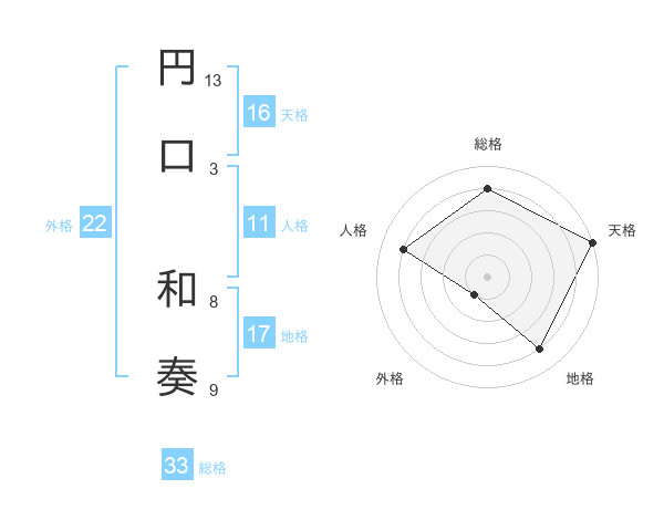 円口 和奏さんの総格は33画の4点!