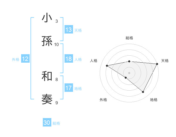 小孫 和奏さんの天格は13画の5点!