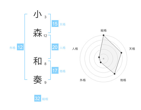 小森 和奏さんの天格は15画の4点!