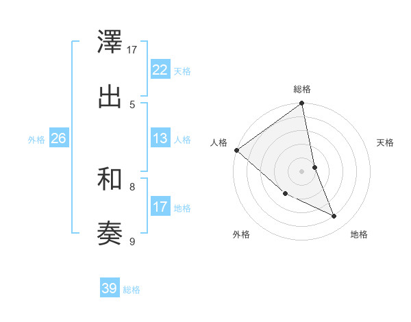 澤出 和奏さんの総格は39画の5点!