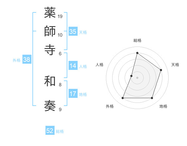 薬師寺 和奏さんの総格は52画の4点!