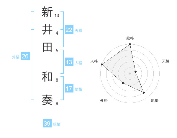 新井田 和奏さんを姓名の画数から五運を鑑定