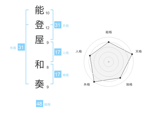 能登屋 和奏さんを姓名の画数から五運を鑑定