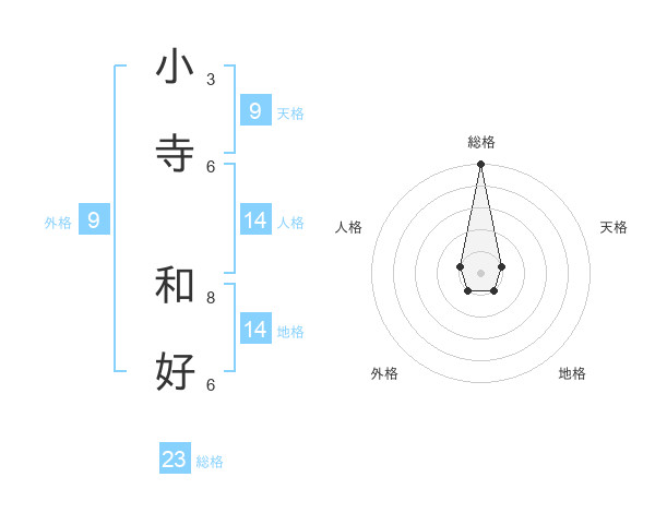 小寺 和好さんの総格は23画の5点!