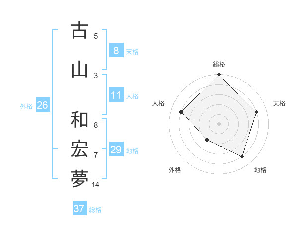古山 和宏夢さんを姓名の画数から五運を鑑定