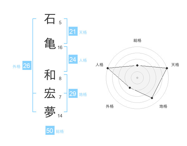 石亀 和宏夢さんを姓名の画数から五運を鑑定