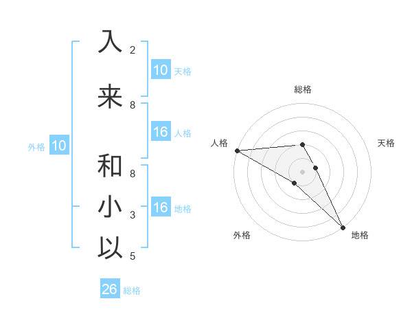 入来 和小以さんの総格は26画の2点!
