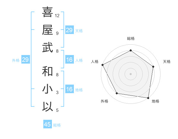 喜屋武 和小以さんを姓名の画数から五運を鑑定