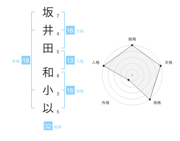 坂井田 和小以さんを姓名の画数から五運を鑑定