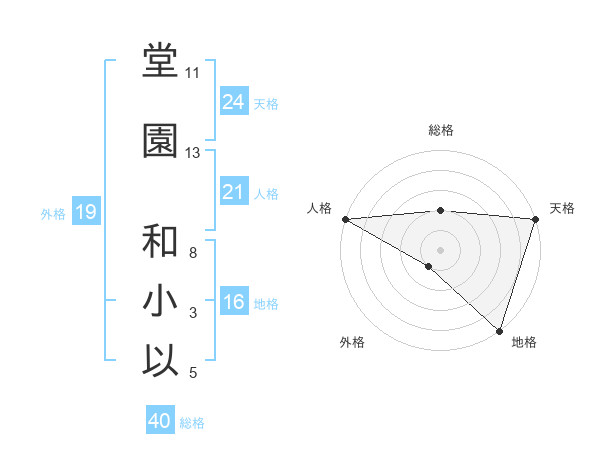 堂園 和小以さんを姓名の画数から五運を鑑定