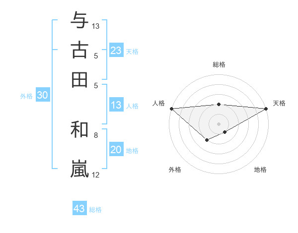 与古田 和嵐さんの天格は23画の5点!