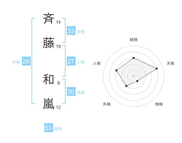 斉藤 和嵐さんを姓名の画数から五運を鑑定