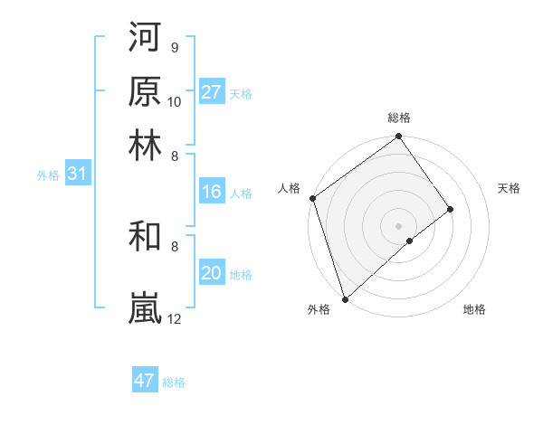 河原林 和嵐さんを姓名の画数から五運を鑑定