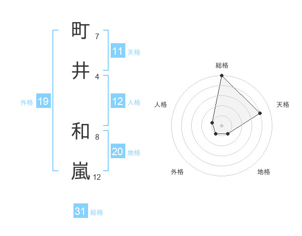 町井 和嵐さんを姓名の画数から五運を鑑定