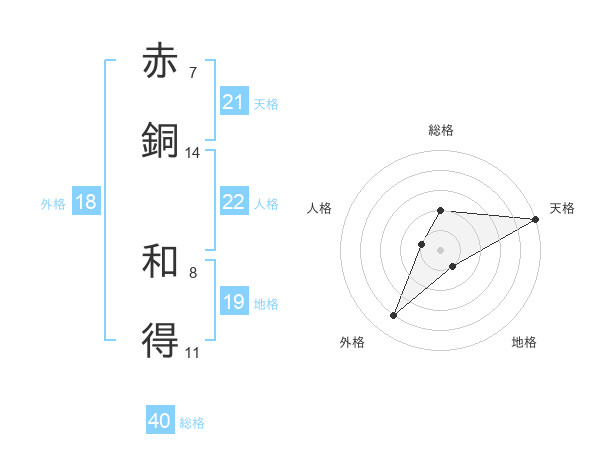 赤銅 和得さんを姓名の画数から五運を鑑定