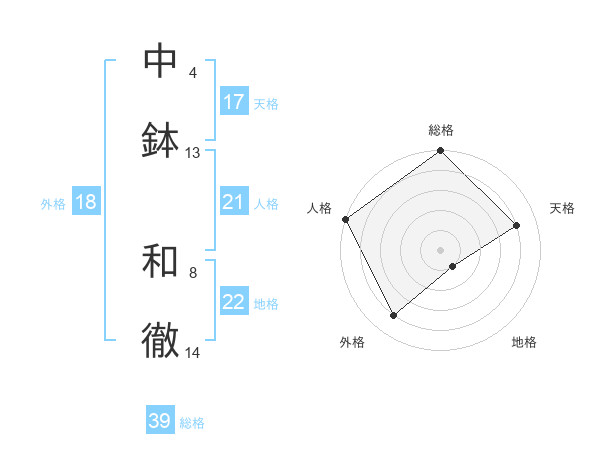 中鉢 和徹さんの総格は39画の5点!