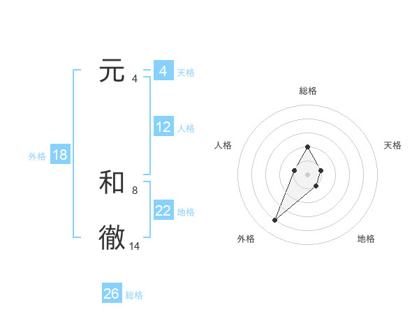 元 和徹さんの総格は26画の2点!