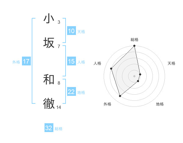 小坂 和徹さんの総格は32画の5点!