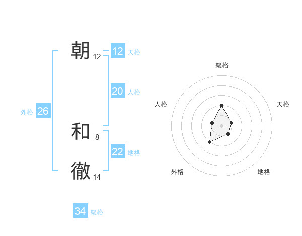 朝 和徹さんの総格は34画の2点!