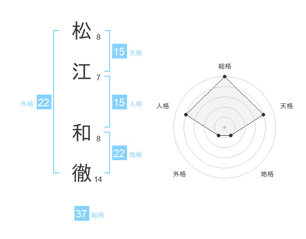 松江 和徹さんの総格は37画の5点!