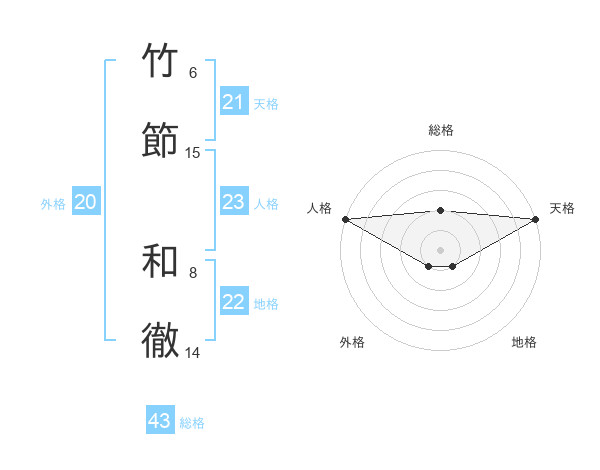 竹節 和徹さんを姓名の画数から五運を鑑定