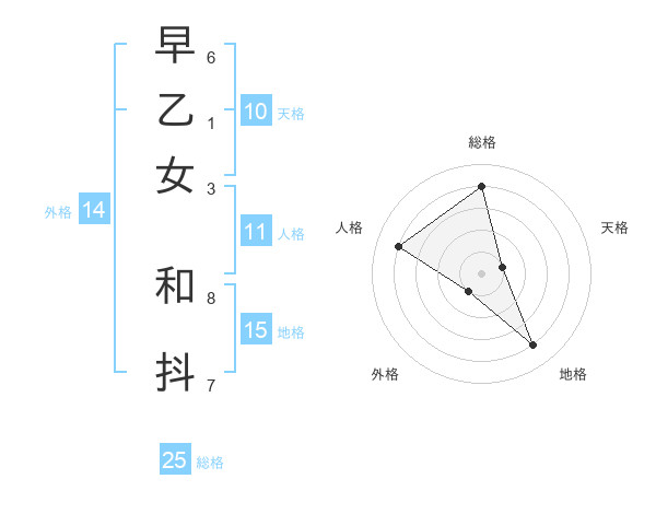 早乙女 和抖さんの総格は25画の4点!