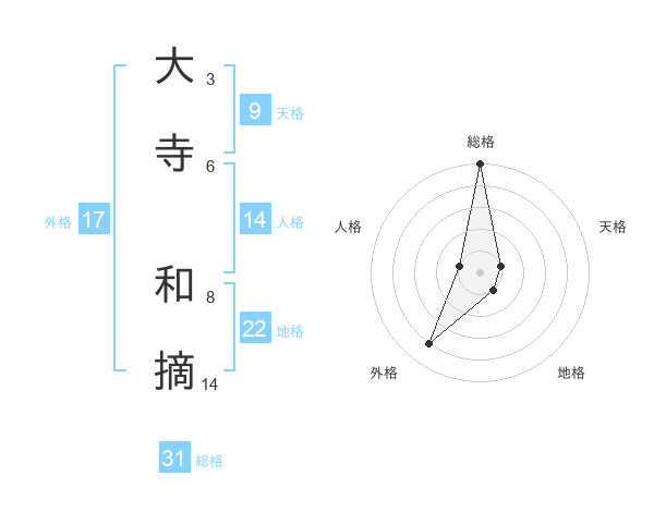 大寺 和摘さんの総格は31画の5点!