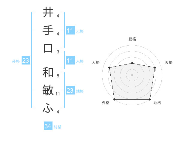 井手口 和敏ふさんの天格は11画の4点