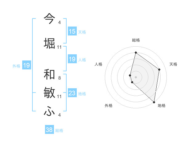 今堀 和敏ふさんを姓名の画数から五運を鑑定
