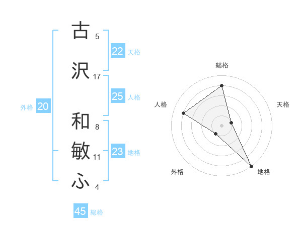 古沢 和敏ふさんを姓名の画数から五運を鑑定