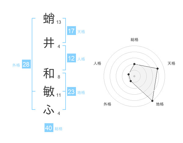 蛸井 和敏ふさんの地格は23画の5点!