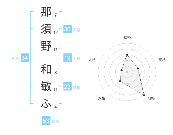 那須野 和敏ふさんを姓名の画数から五運を鑑定