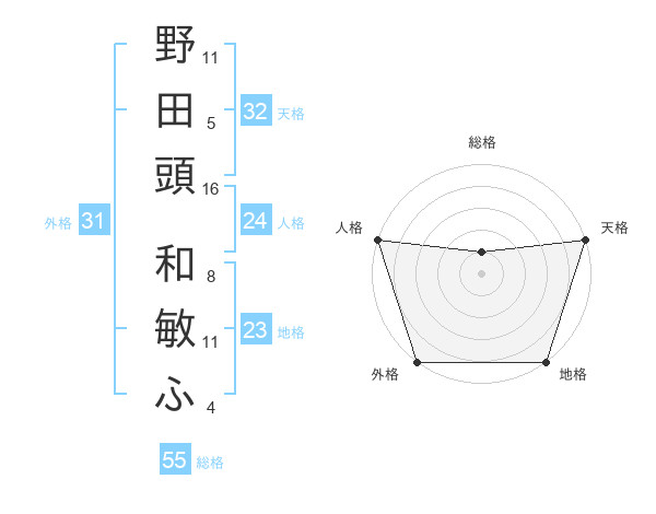 野田頭 和敏ふさんの人格は24画の5点!