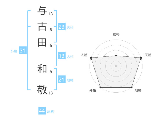 与古田 和敬さんの外格は31画の5点!