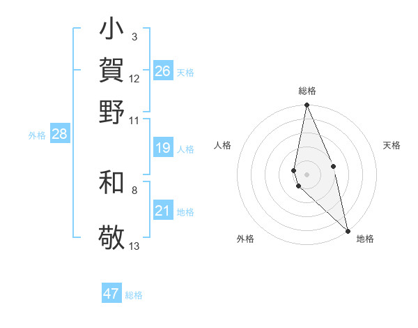 小賀野 和敬さんを姓名の画数から五運を鑑定