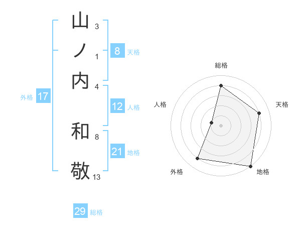 山ノ内 和敬さんを姓名の画数から五運を鑑定