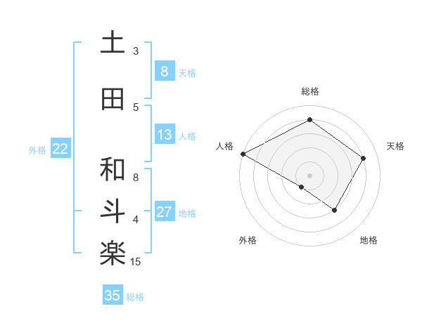 土田 和斗楽さんを姓名の画数から五運を鑑定