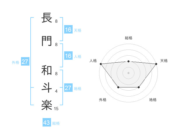 長門 和斗楽さんの天格は16画の5点