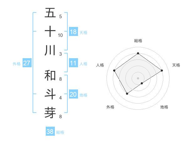 五十川 和斗芽さんを姓名の画数から五運を鑑定