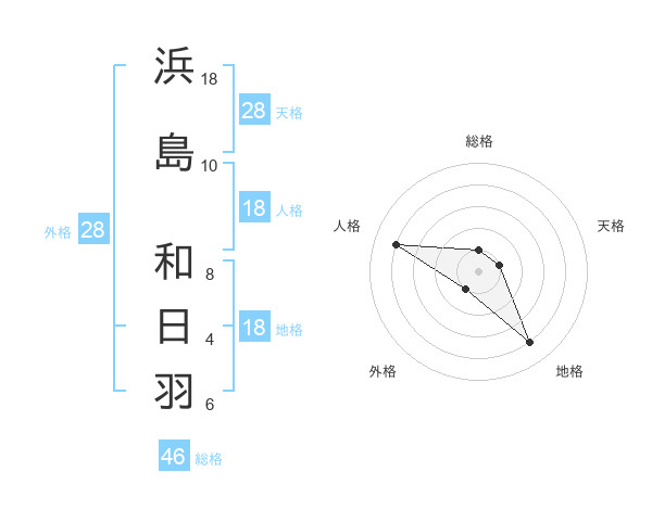 浜島 和日羽さんの外格は28画の1点!