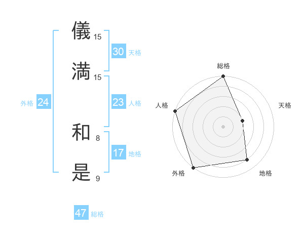 儀満 和是さんの総格は47画の5点!